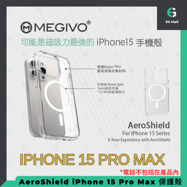 Megivo - AeroShield iPhone 15 Pro Max 保護殼 高效散熱 裸機手感 2.5 KG 的超強吸力