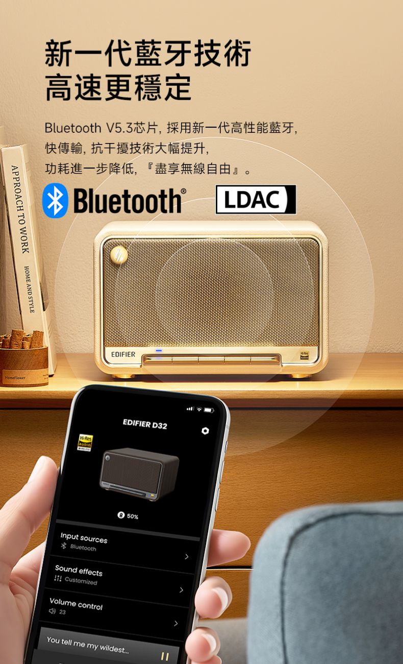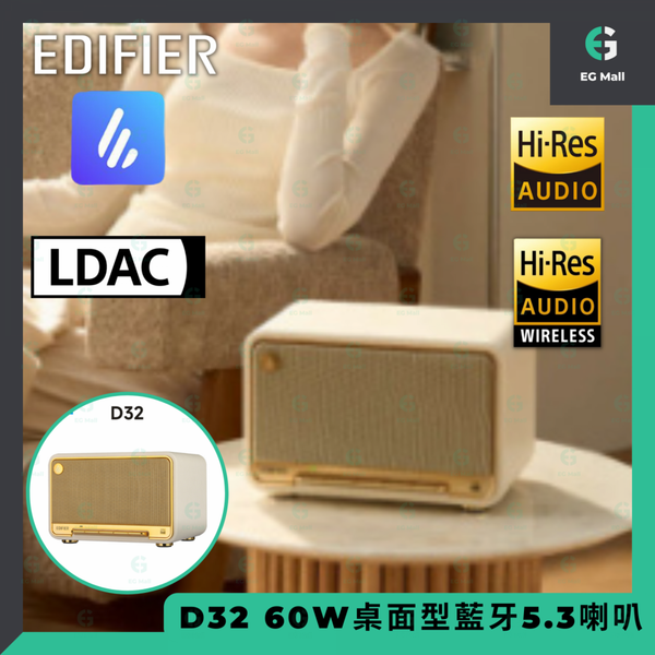EDIFIER - D32 漫步者 60W 桌面型藍牙 5.3 喇叭 白色 雙金標 HI-Res AAC ALAC 編解碼器 EQ LDAC MDF箱體