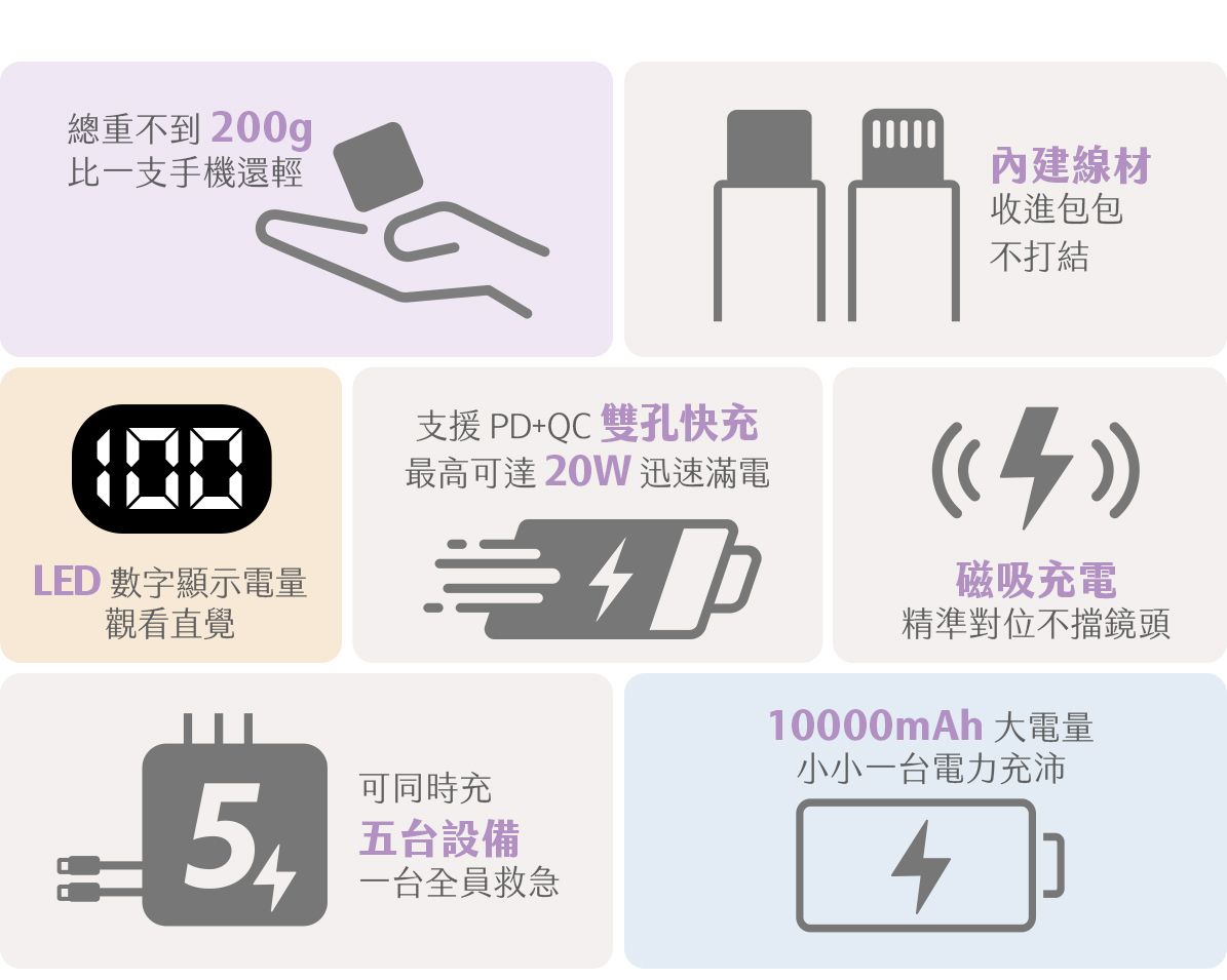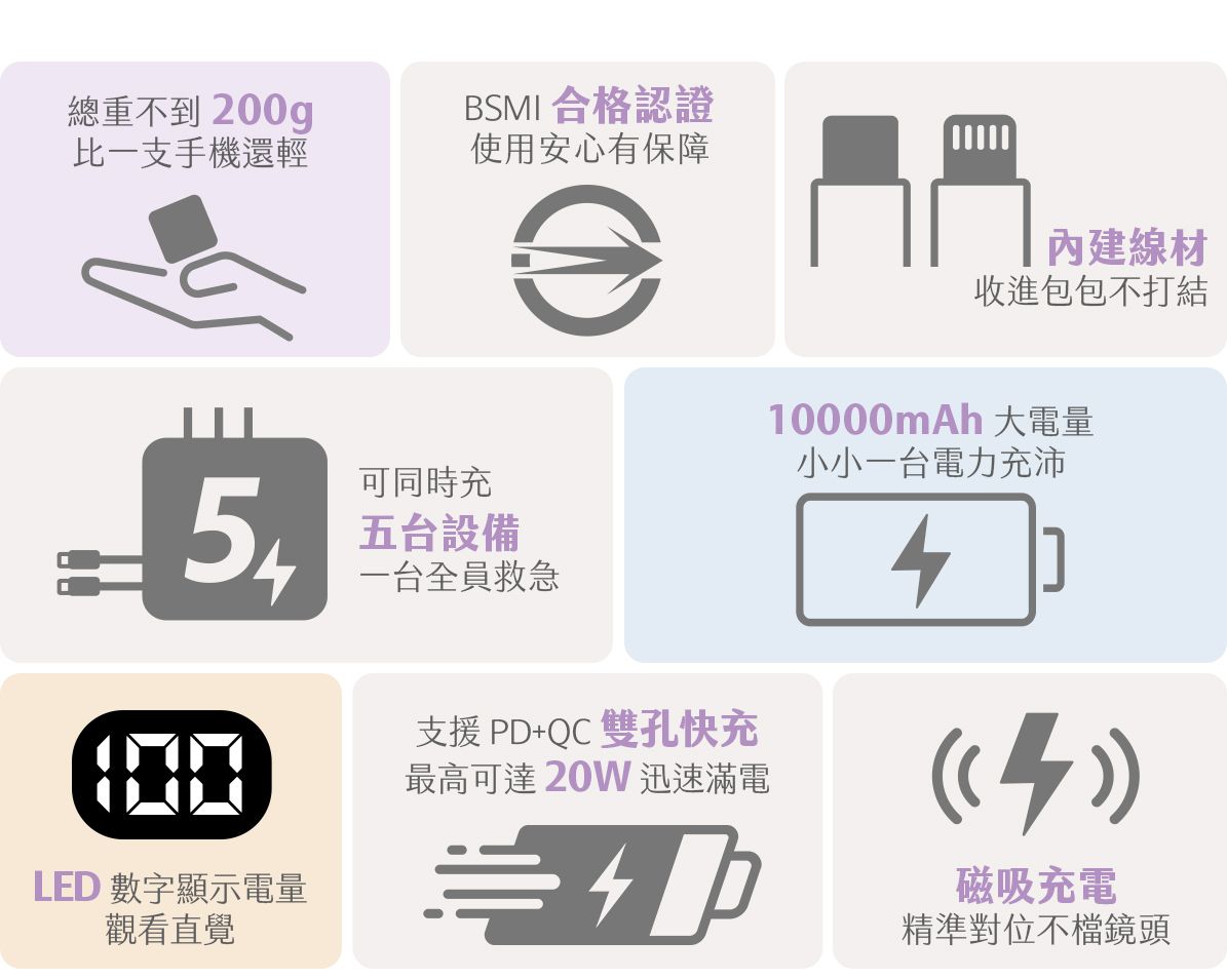 -行動電源+旅充+磁吸無線充,多合一可同時充5台設備