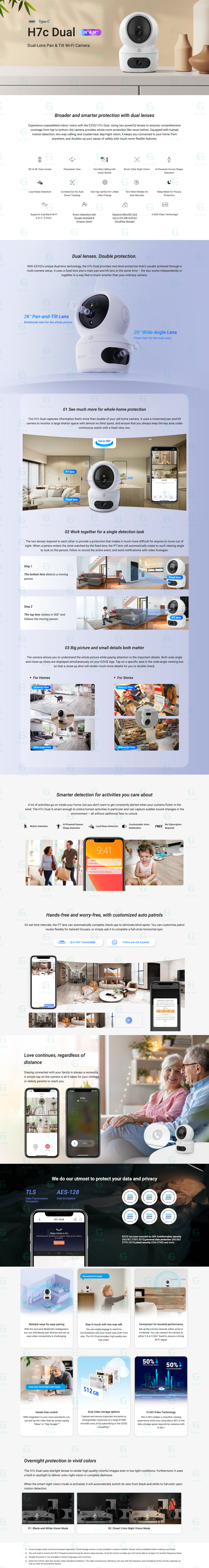 使用 EZVIZ H7c Dual 體驗無與倫比的室內視覺。 這款攝影機採用兩個強大的鏡頭,確保從上到下的全面覆蓋,提供前所未有的全房間保護。 它配備人體運動偵測、雙向通話和清晰的日間/夜視功能,讓您可以從任何地方與家中保持聯繫,並透過更靈活的功能加倍您的安全感。