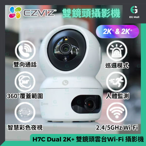 EZVIZ IP Cam H7c Dual 2K+ 雙鏡頭雲台Wi-Fi 攝影機 2.4G/5G 紅外夜視 雙向談話 睡眠模式 支援MicroSD卡 智能家居攝像機 新加坡伺服器