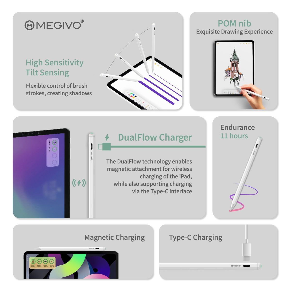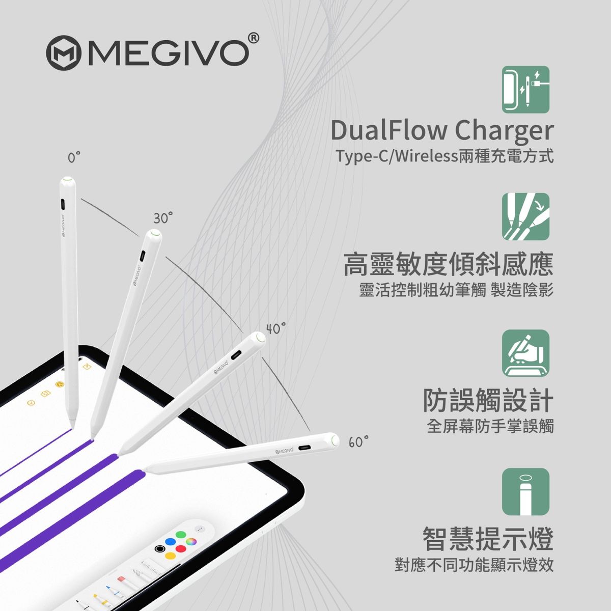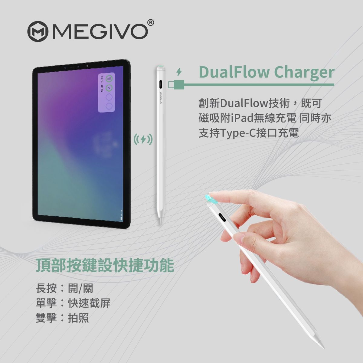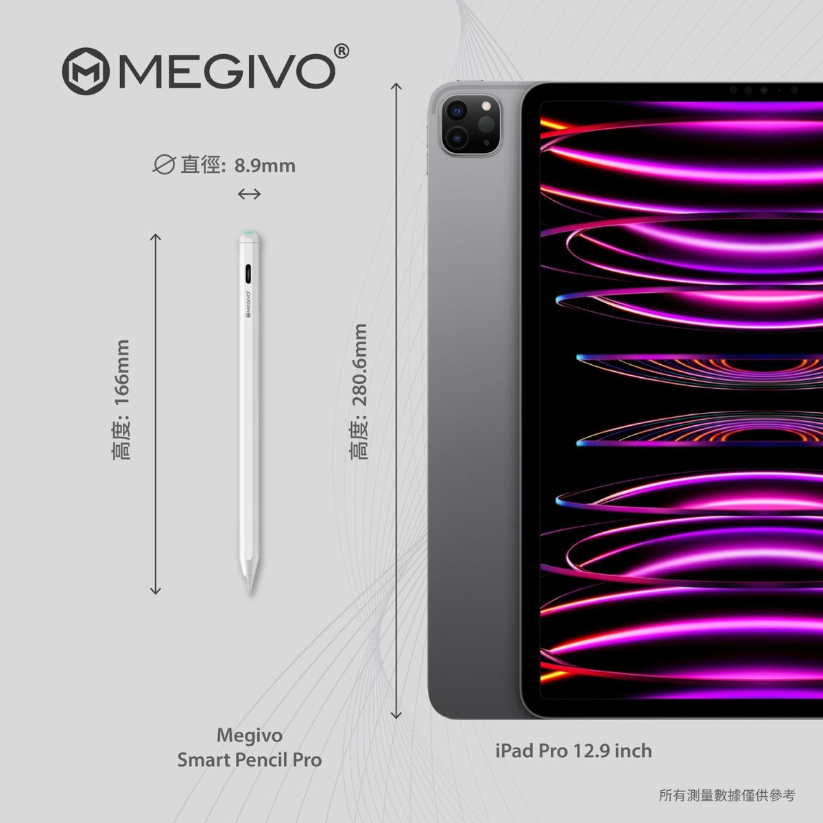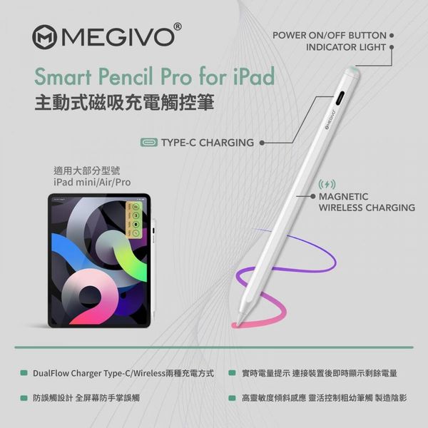 Megivo - Smart Pencil Pro 第三代 iPad Stylus 專用筆 SPI03 FOR Apple Ipad Mini Air Pro 主動式磁吸螢幕觸控筆 TYPE C 充電