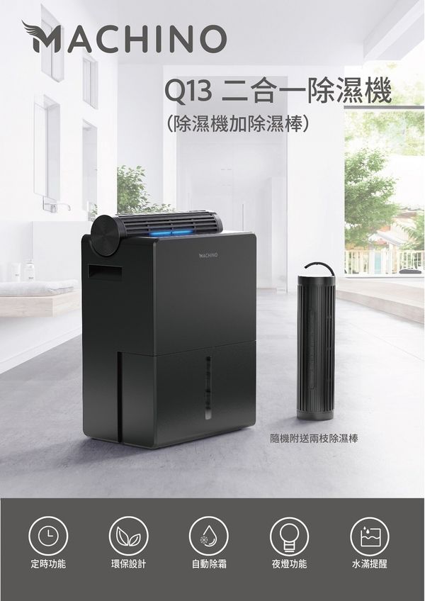 Machino Q13 二合一除濕機 2.5L水箱 抽濕機 無限吸濕棒 無線吸濕 烘乾底座 抽濕棒 (除濕棒 *2 套裝)