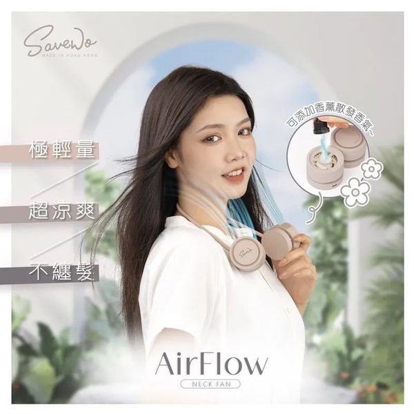 救世 - SAVEWO AirFlow Portable Fan 掛頸風扇 雙門掛頸無葉風扇 可添加香薰 親膚材質 三段風速 可摺疊收納