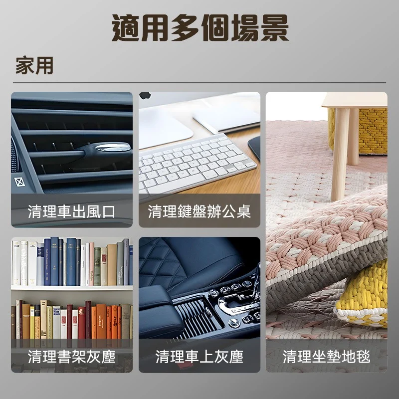 吹乾頭髮/清理汽車出風口/鍵盤辦公桌/書架灰塵/坐墊地毯