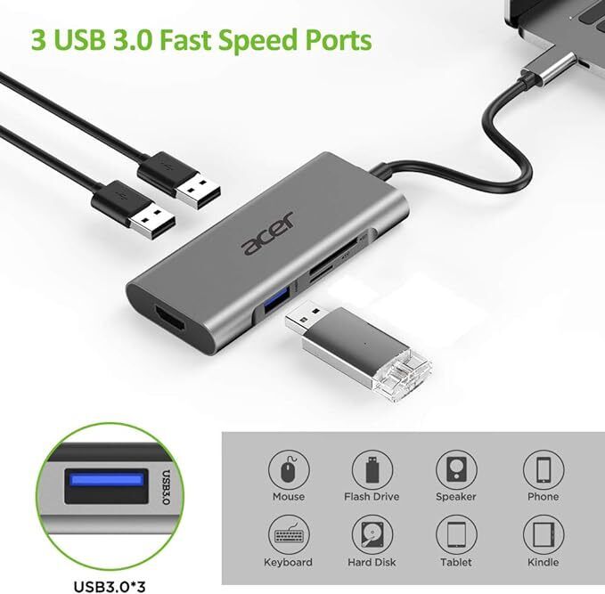 acer - 宏碁 擴展器 ODK380 Acer 7 合 1 USB C 100W Type C HUB Mini Dock 集線器 數據傳輸 HDMI