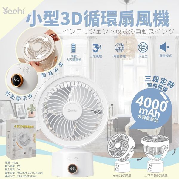 Yachi 3D 空氣循環扇 座枱風扇 上下 左右 搖擺 多段搖頭桌面小風扇 香薰蓋 定時功能 四扇頁 智能顯示屏 Portable Fan