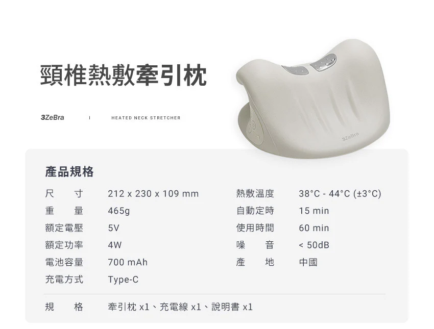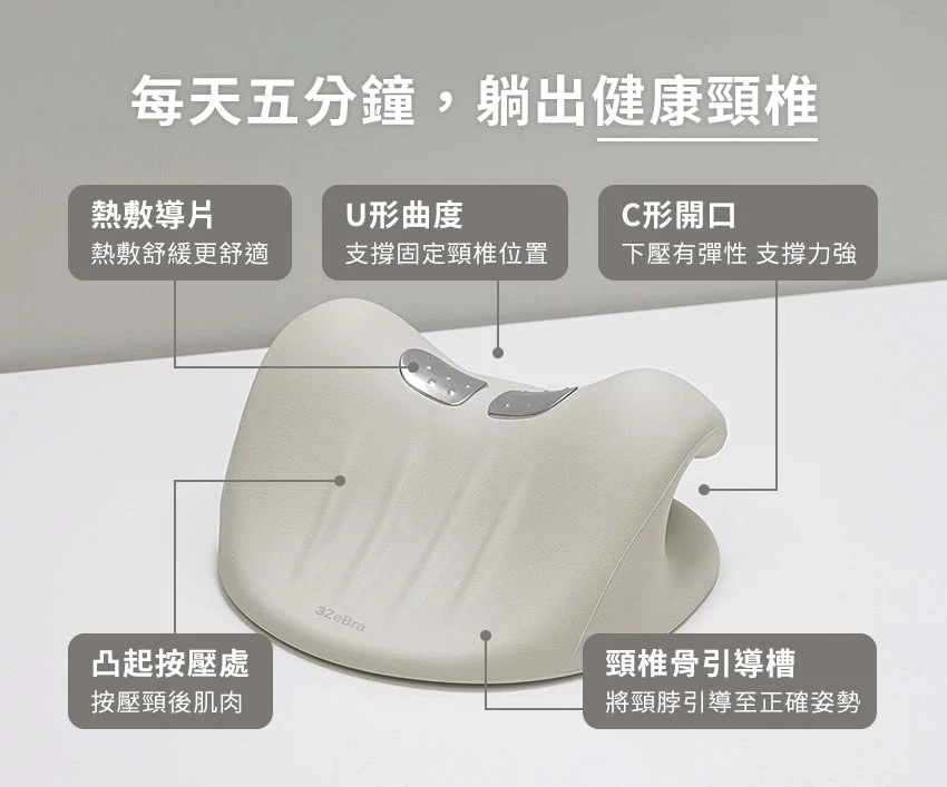 台灣品牌 3ZeBra 推出的頸椎熱敷牽引枕,日常生活或工作中難免避免姿勢不良的時候,