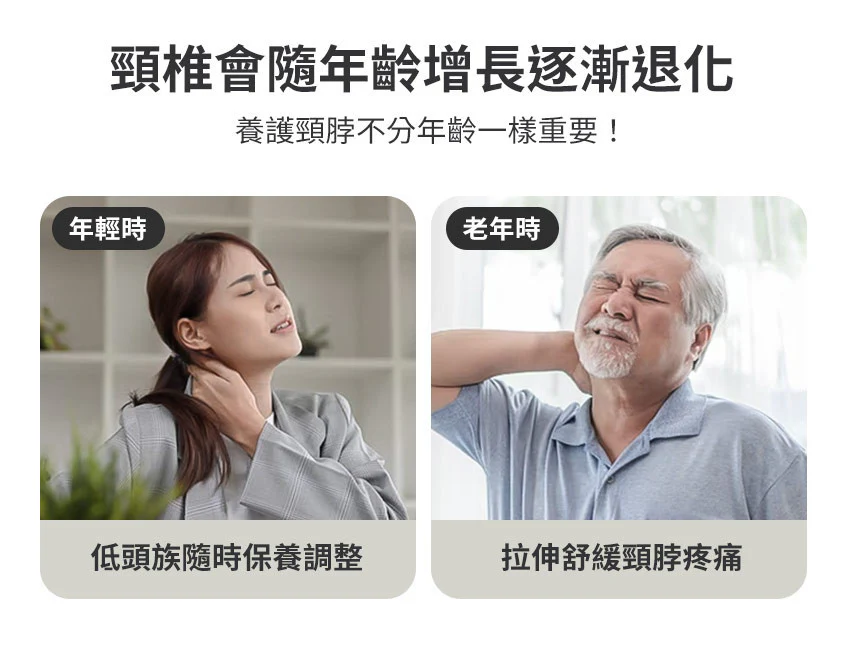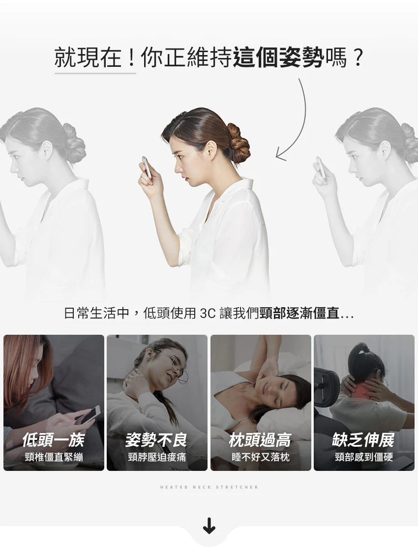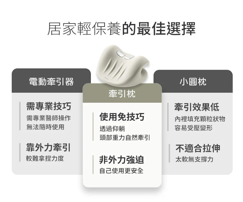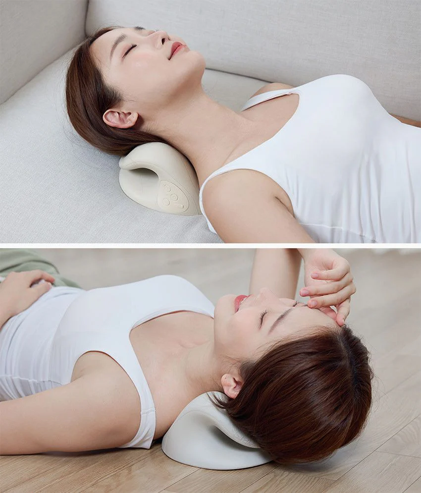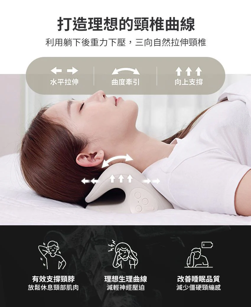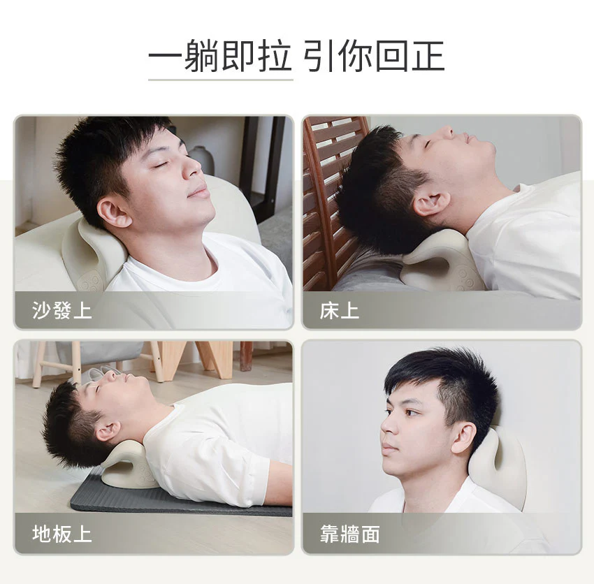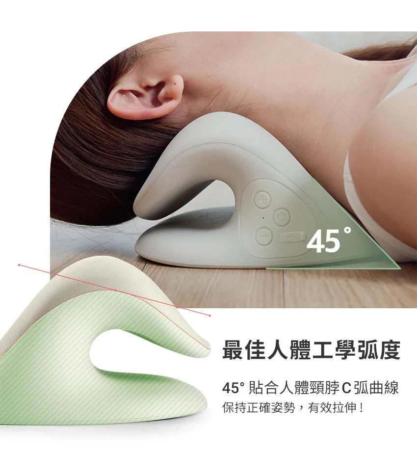 導致肩頸有問題出現,這款頸椎熱敷牽引枕,除了可拉伸肩頸外還有熱敷的功能,二合一護理頸部,符合人體工學,C 弧曲線設計。每天五分鐘,躺出健康頸椎!