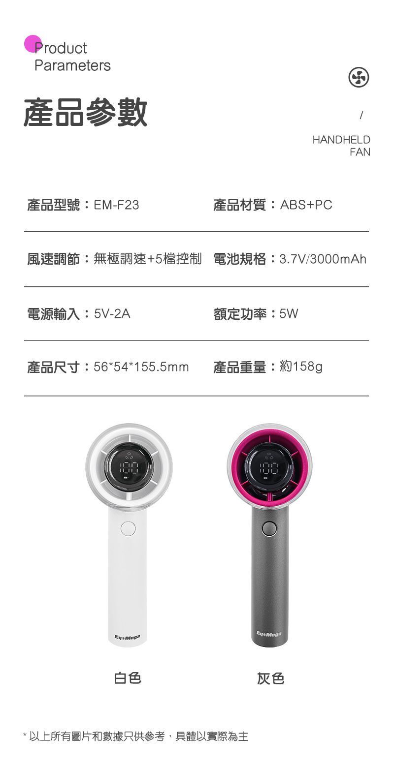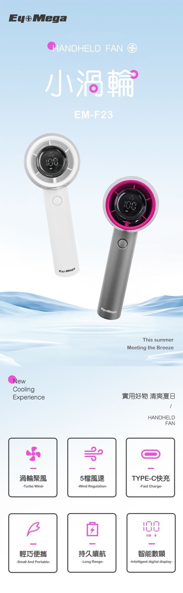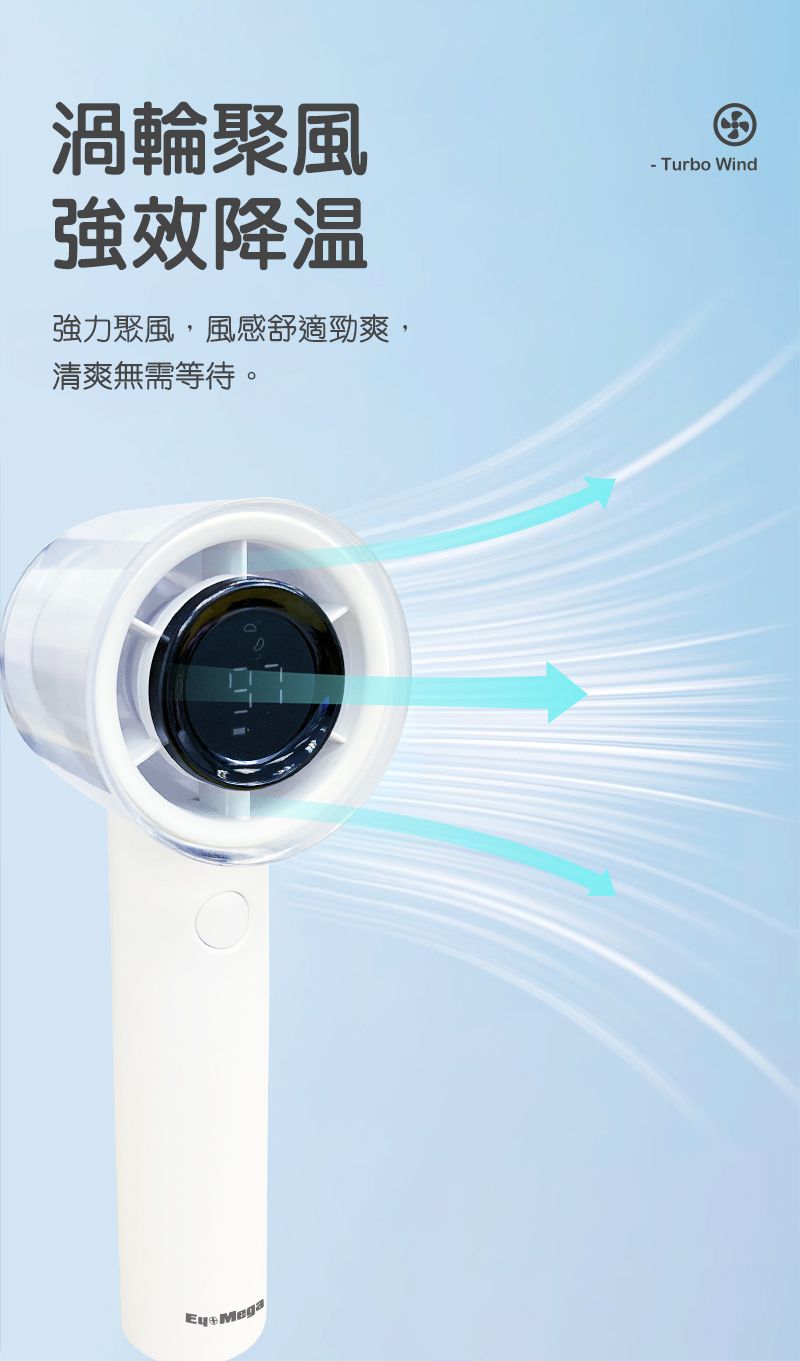 EyeMega - 手持渦輪風扇 EM-F23 白/灰色 Jet Fan 高速風扇 Type C充電 風筒形風扇 LED 顯示