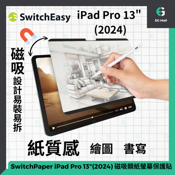 魚骨牌 - SwitchPaper iPad Pro 13 (2024) SPD249111TR24 磁吸類紙螢幕保護貼 可拆卸磁石紙感貼 屏幕保護貼 紙質感 繪圖 畫畫 防指紋 防污 易於清潔