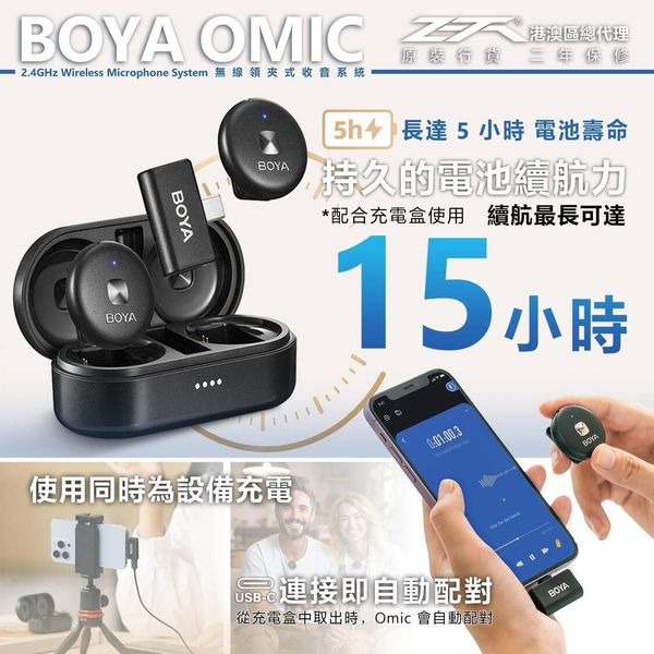 BOYA Omic 黑色 博雅 無線領夾式收音系統 支援無線充電 無線操作 50米 可拆卸磁吸背夾