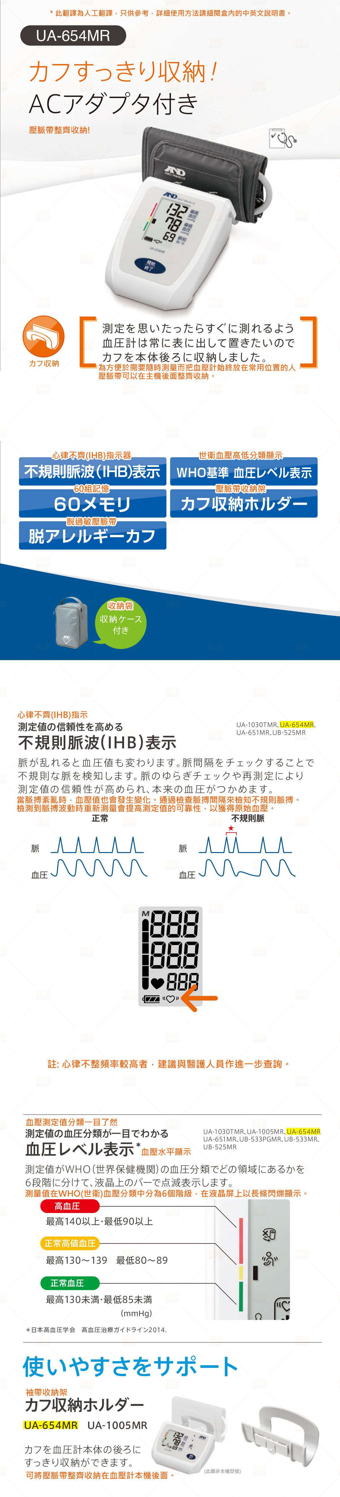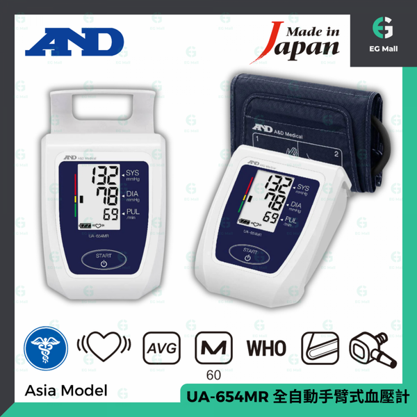 AND A&D Medical - 日本製造 愛安德 全自動手臂式血壓計 UA-654MR SlimFit袖口設計 22-32cm