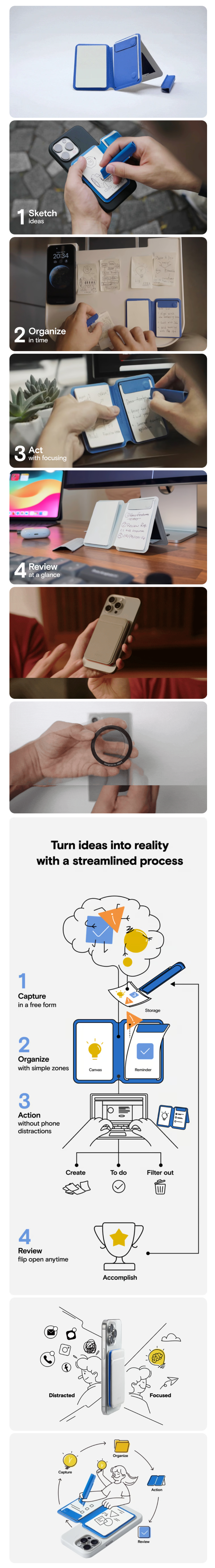 2.迷你筆記本磁吸在手機背面,在需要時摺疊成備忘錄