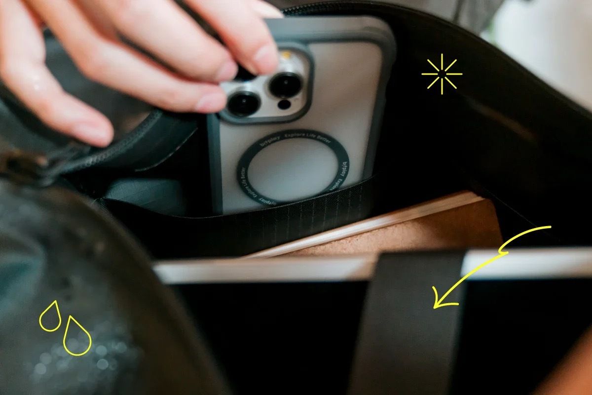 「買了便宜的防水袋,關包步驟複雜,外觀又難看!」「遇到突如其來的暴雨,包內的耳機、錢包、手機、相機、毛巾全濕透 !」