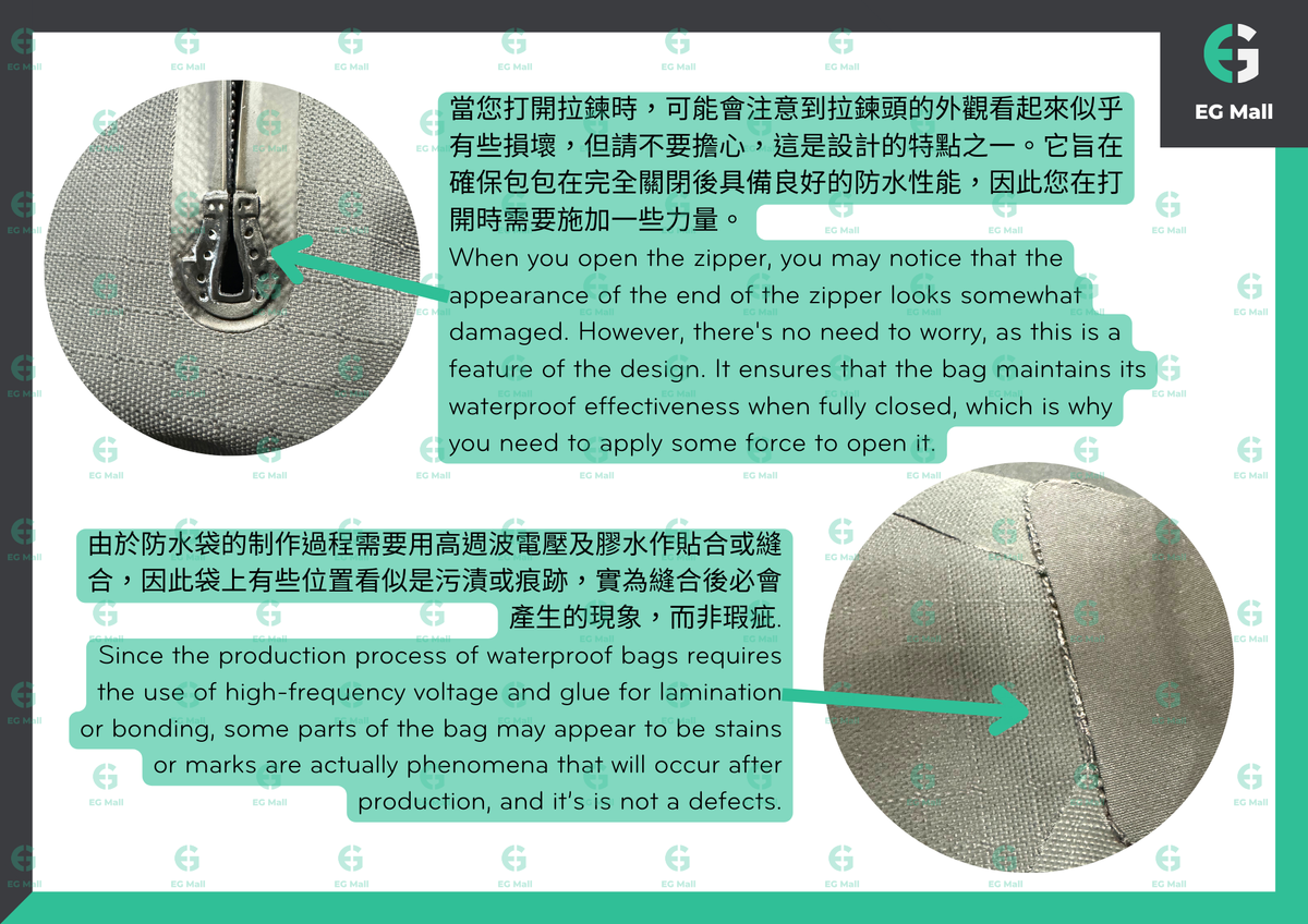 1. 拉鍊拉到底,立即擁有真正IPX7全防水規格,可下水一公尺處30分鐘,海邊游泳、溯溪、浮潛,重要物品都能安心跟著下水,防水性與安全性雙重保障!