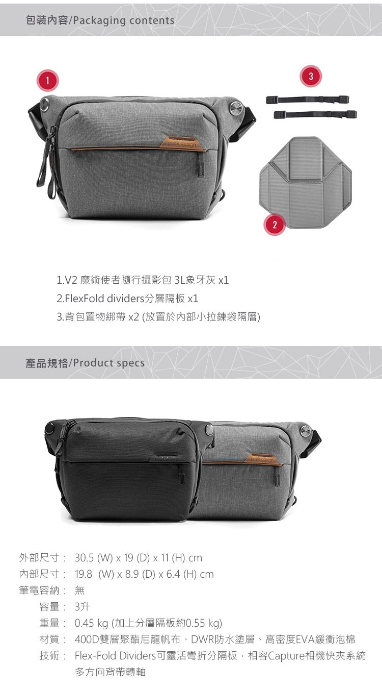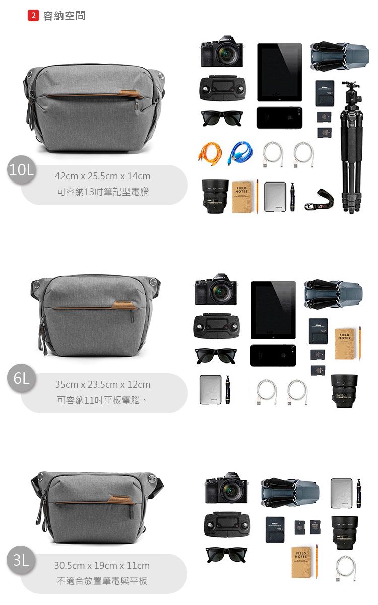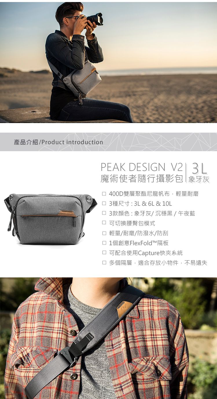 作為 Everyday Line 中最小、最輕的包,全新的 Everyday Sling 現在有 3L、6L 和 10L 尺寸可供選擇,因此您可以挑選出完美的伴侶,用於隨身攜帶日常用品或攝影裝備。