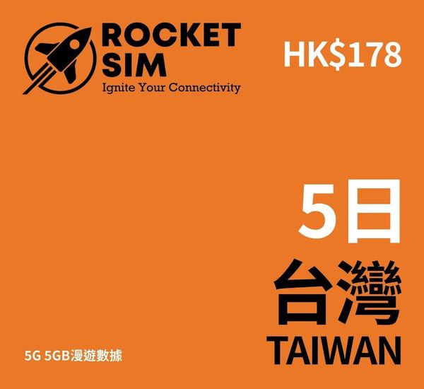 Others - ROCKET SIM 5日 無限上網 台灣(不用實名登記) 即插即用 台灣 外遊數據卡 旅行 4G/5G LTE 無限數據卡 使用限期 30/09/2025