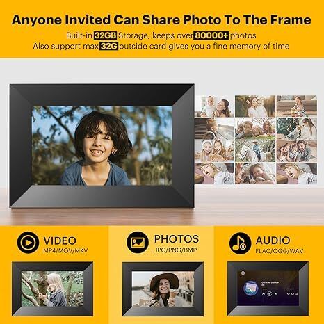 1024*600 IPS | 觸摸屏 | 可顯示照片/音樂/視頻/日曆/時鐘 | 支持背景音樂和幻燈片播放 | 內置32GB內存
