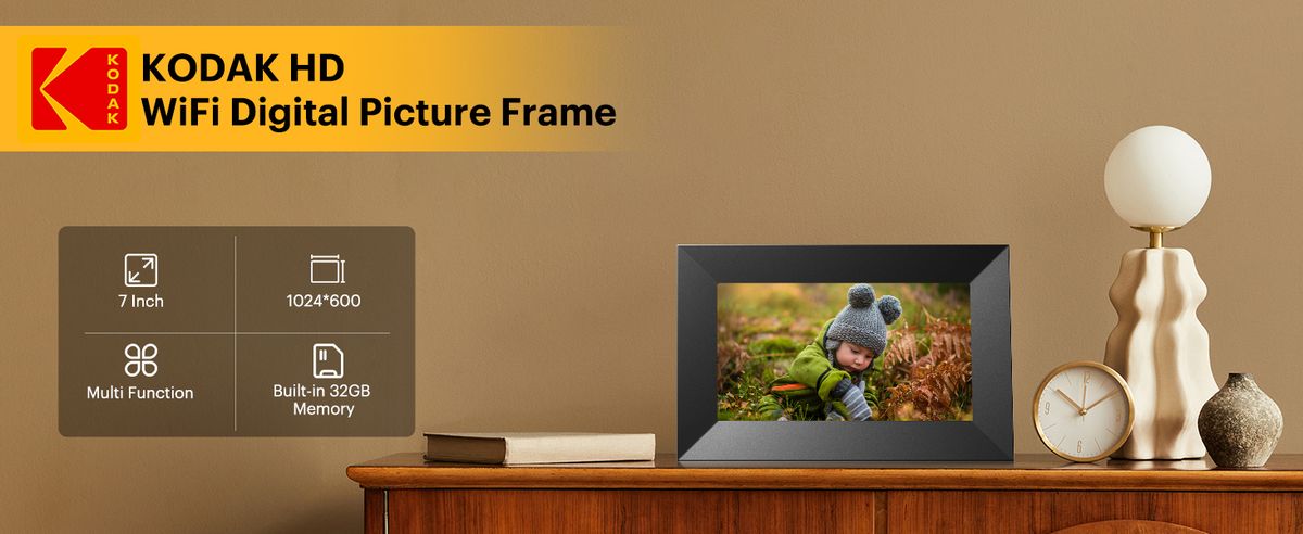 柯達 - RCF-702P Wifi 數碼電子相架 顯示屏 7 英寸 32GB 觸摸屏照片 視頻播放 兼容 SD卡/ USB 存儲器 Type C 充電 音樂 播放相片 隨機發貨