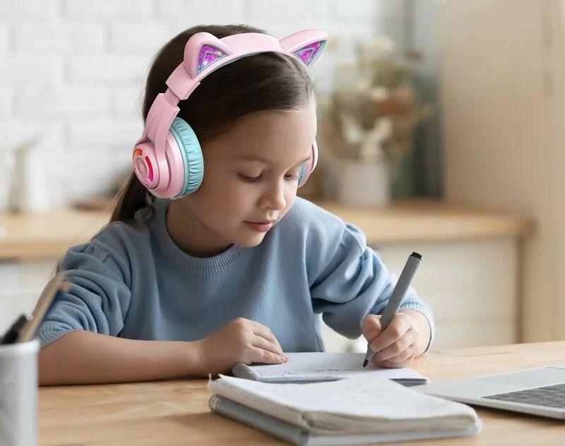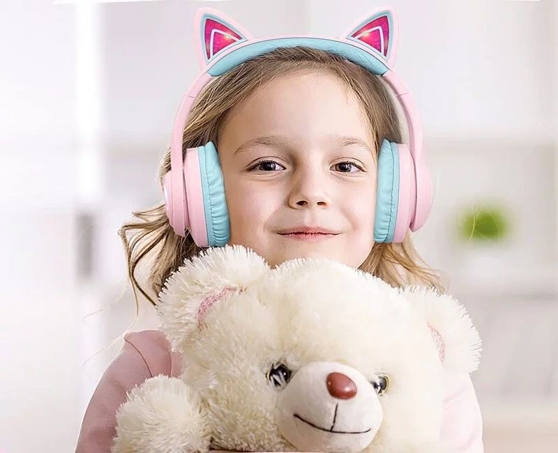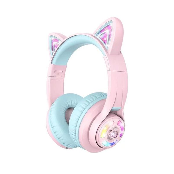 iClever KOL RGB發光貓耳有線/無線藍牙兒童耳機帶咪