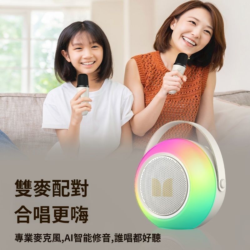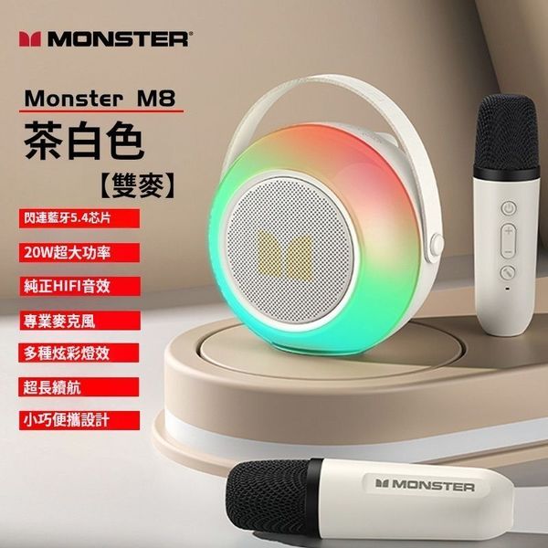 MONSTER - 唱K神器 M8 兒童無線 Karaoke 咪 立體聲 消除人聲 RGB燈效 無線K歌音箱 卡拉OK 播放器 一鍵原唱消音 雙Mic 雙人合唱 平行進口
