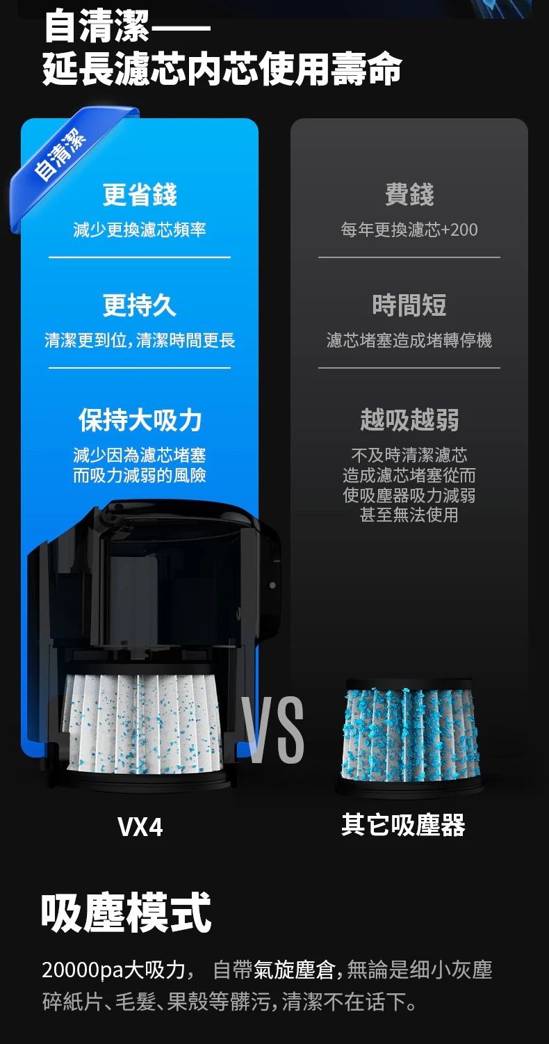 經常使用反吹模式可有效保持吸塵濾芯使用壽命