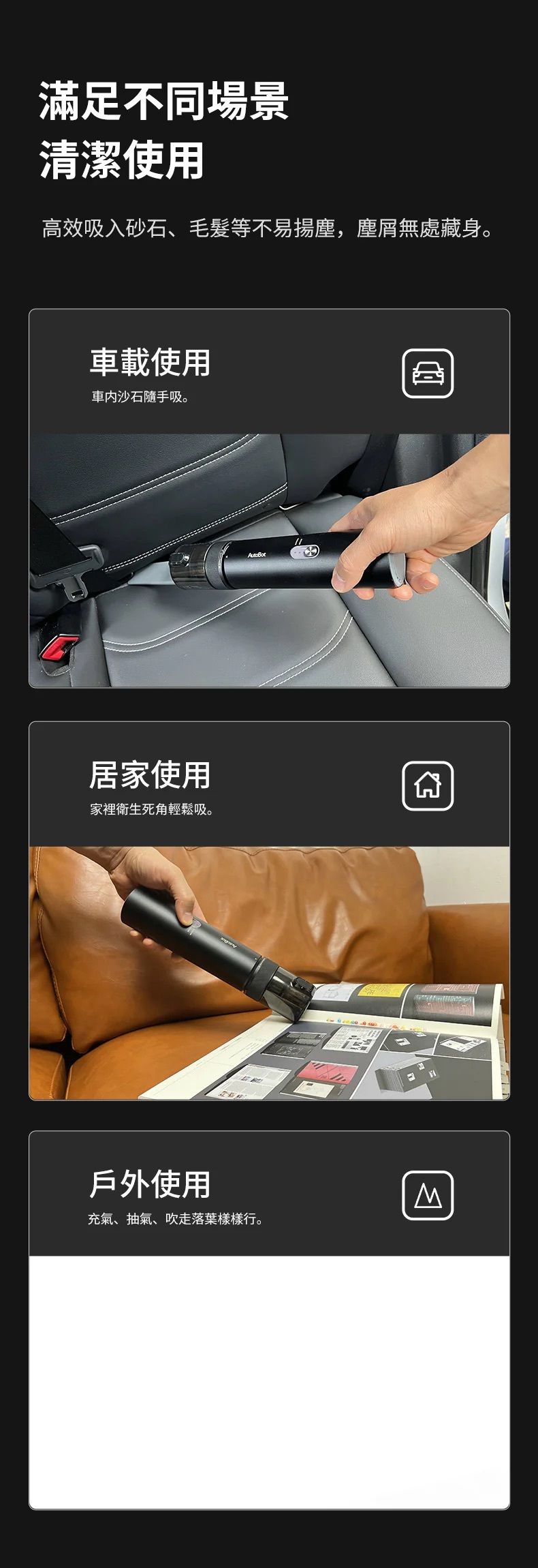 三大模式 (自動清潔,吸塵,吹氣)