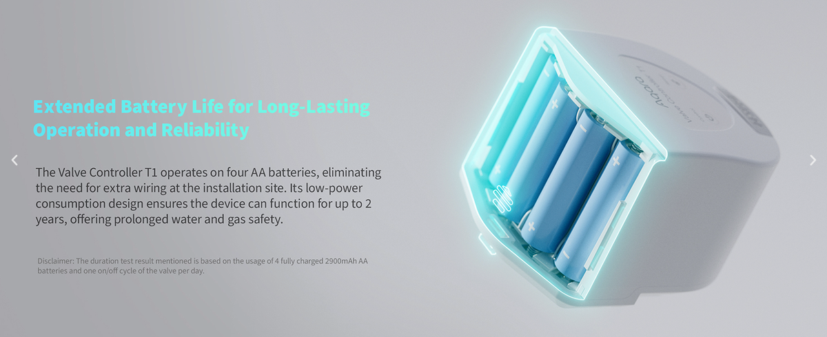 # 經 Aqara實驗室測試,使用 4粒 2900mAh AA電池,每天開關閥門一次,續航時間可達 2 年