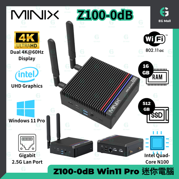 MINIX - 迷你電腦 Mini PC Z100-0dB Intel Alder Lake-N 512gb SSD + 16gb RAM 四核心 N100 Window 11 PRO
