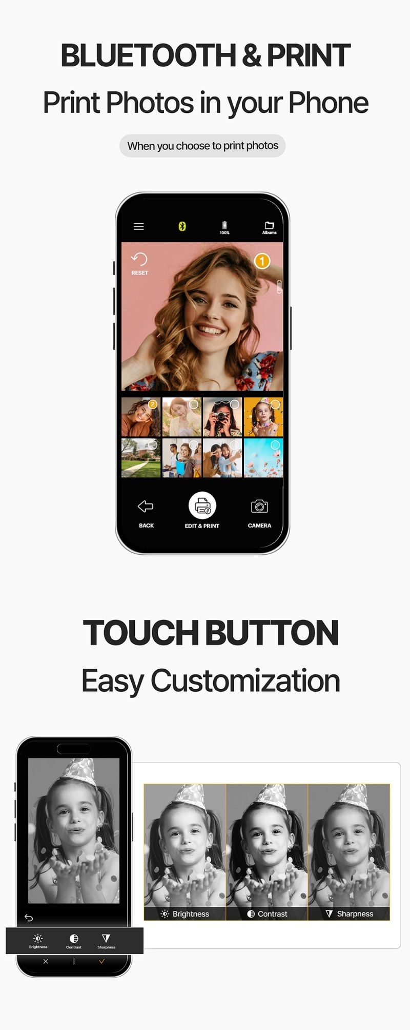 這款即時相機和無線相片印表機採用熱感列印技術,可列印口袋大小的單色照片和文字備忘錄。