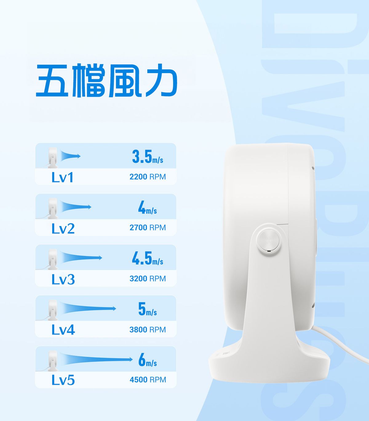 5級高速風(最高轉速高達4500RPM)