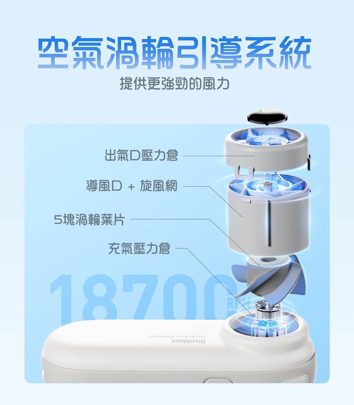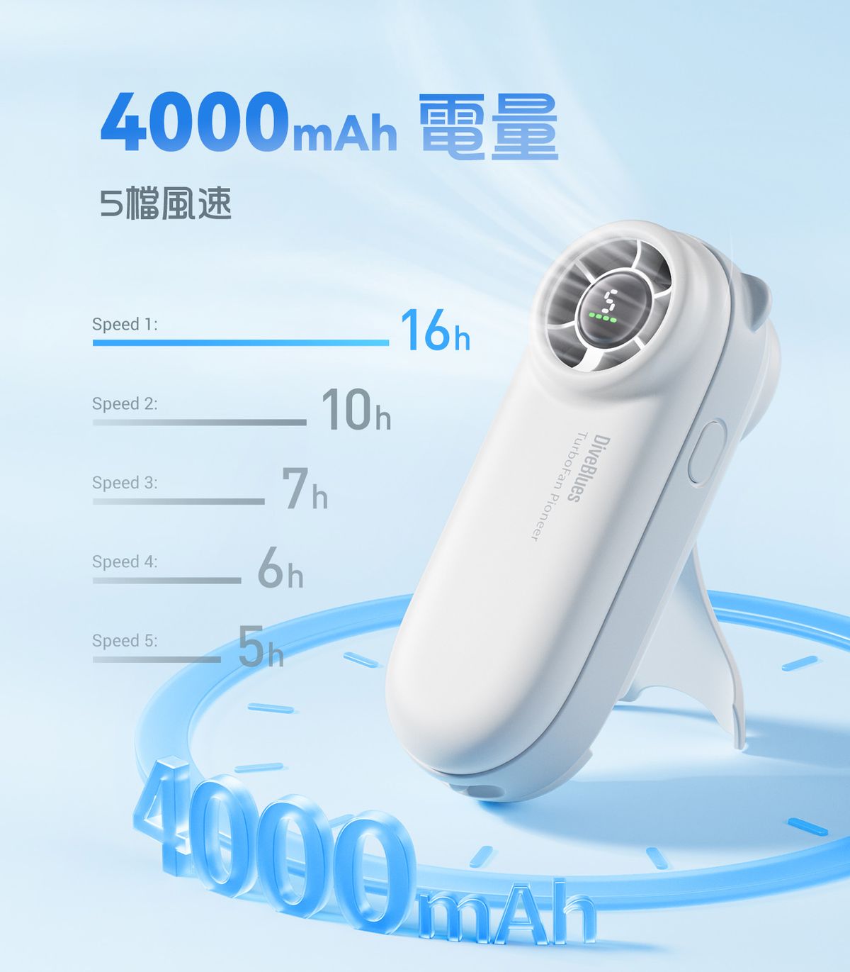 Diveblues - 小熊 提高速渦輪風扇 Turbobear Type C 充電 8.8m/s 猛烈風力 手提風扇 無線便攜風扇 座檯 掛頸風扇 坐枱風扇 LED彩屏數字顯示
