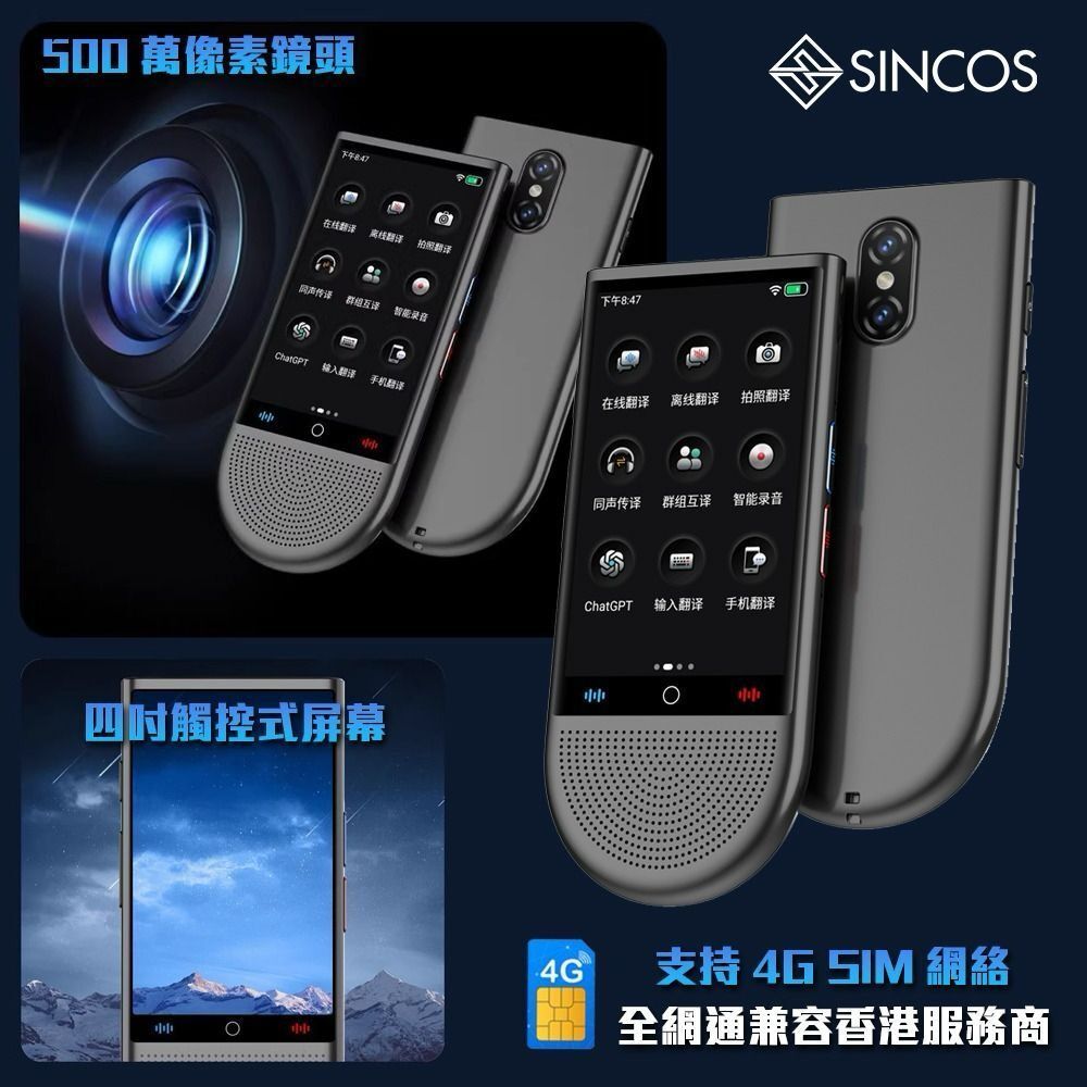 SINCOS 翻譯機 S15-LTE AI ChatGPT 4G全網通智能AI多功能旅行翻譯機 在線/離線 翻譯 支援廣東話 智能錄音