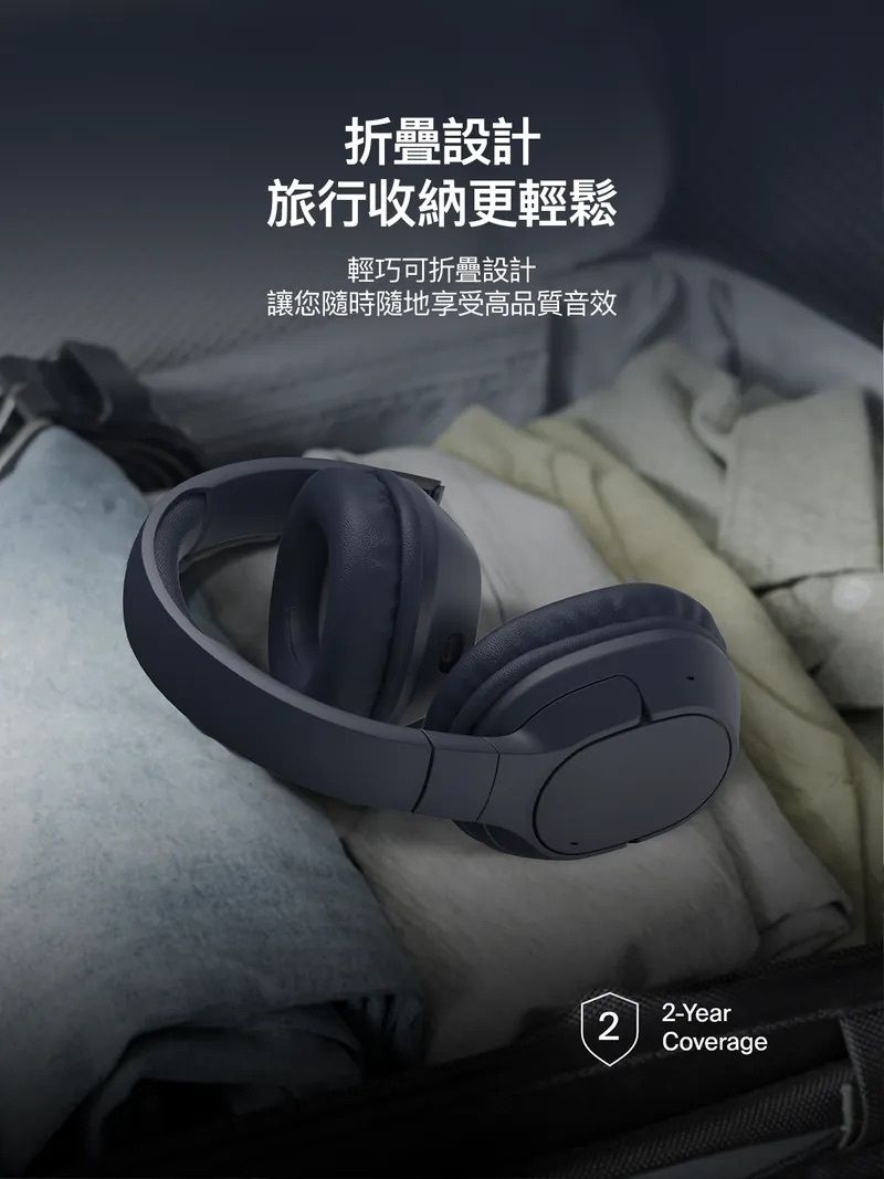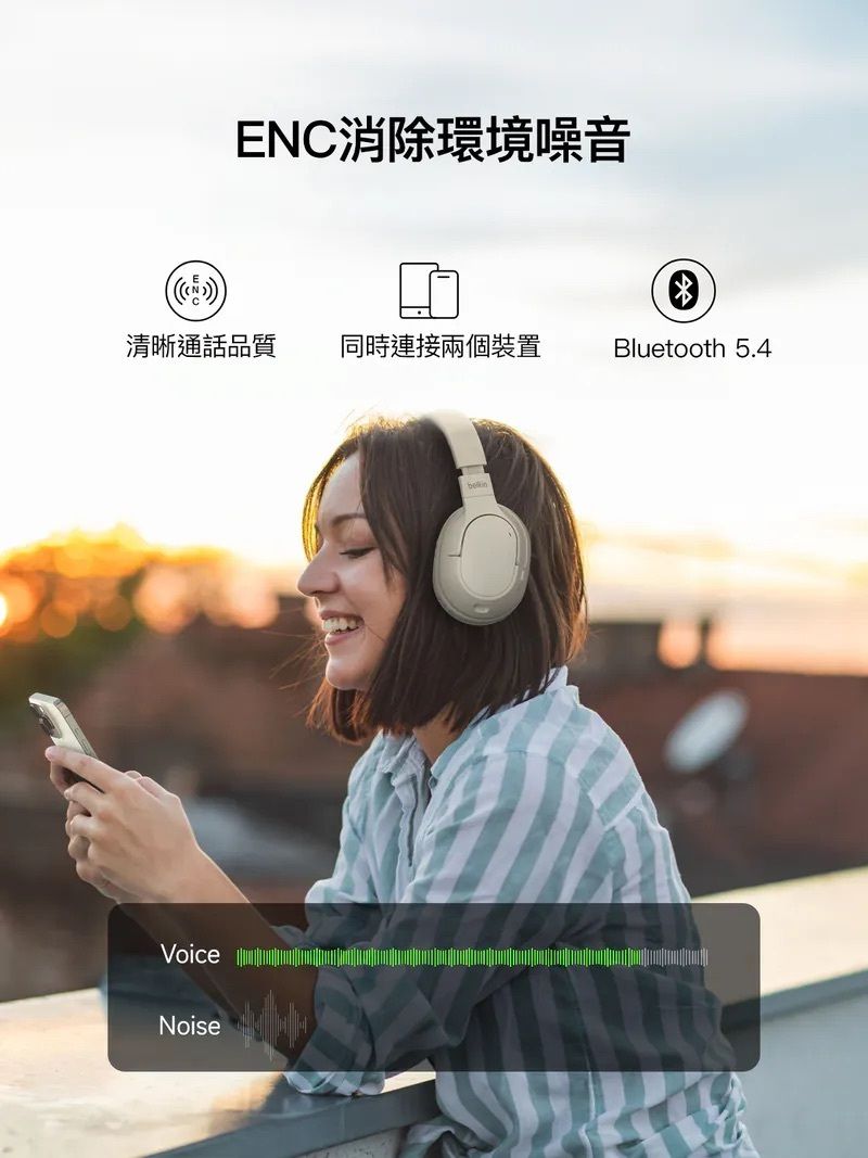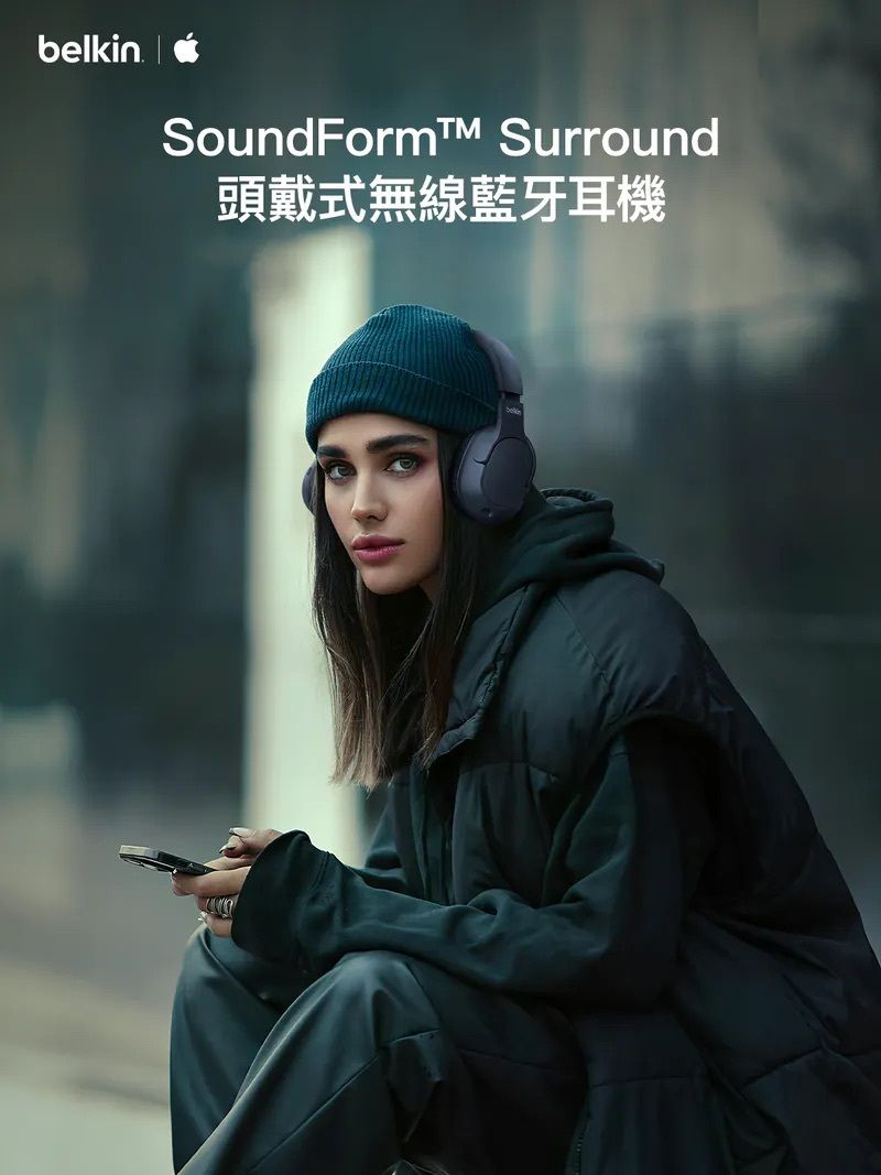 Belkin - SoundForm Surround 頭戴式無線藍牙耳機 可折疊 無線耳罩式耳機 Type C 耳機 3.5mm 內建麥克風 多點連接