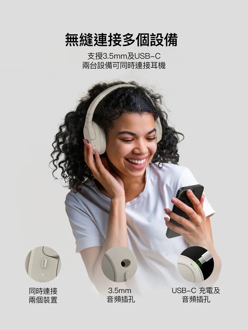 * 包含3.5mm與USB-C連接線,可連接各類音頻設備。