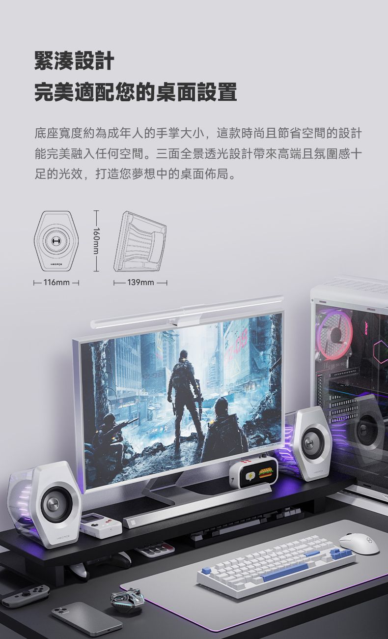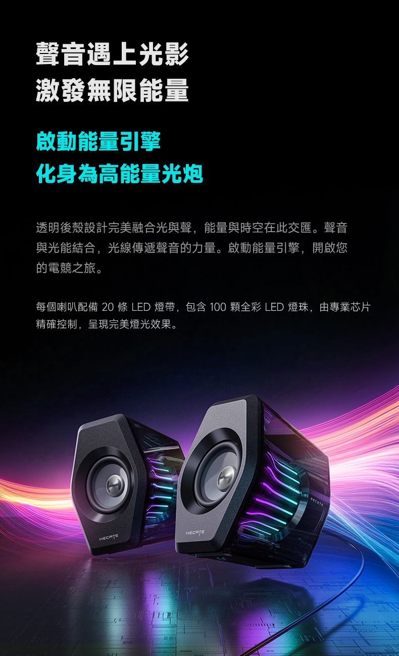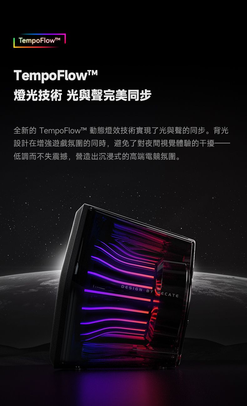「透明設計搭配酷炫 RGB 燈效」- 透明外殼配備 RGB 環境燈條,展現時尚且沉浸的使用體驗。