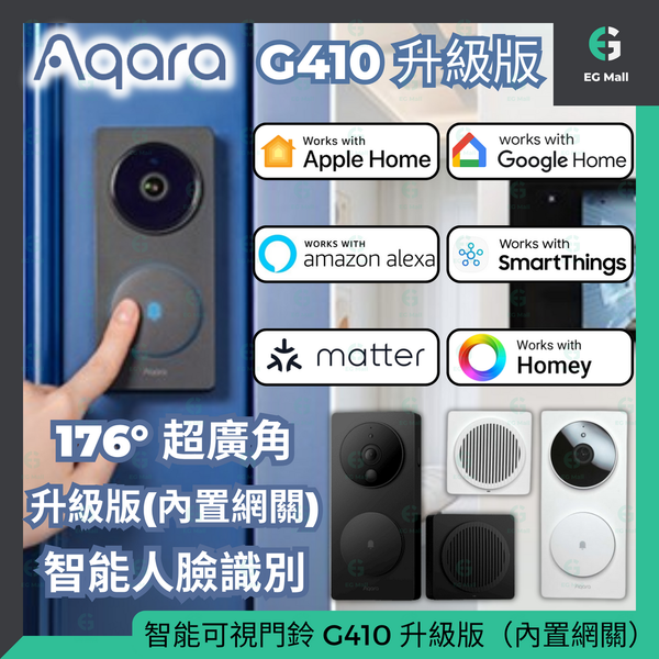 Aqara - 人面識別智能可視門鈴 G410 內置網關 (升級版) mmWave 雷達 175°超大廣角 智慧型視覺門鈴 端對端加密 Wi Fi 紅外線夜視