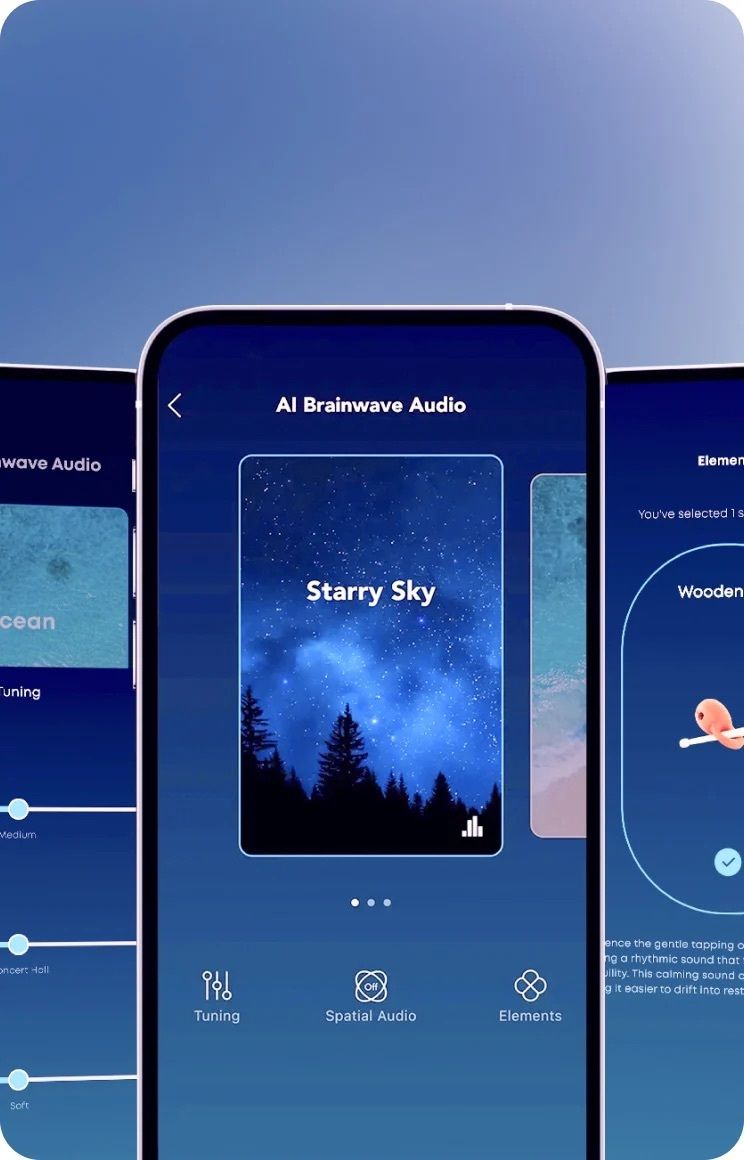 主動降噪和打鼾掩蔽系統,杜絕噪音幹擾睡眠。 AI腦波音頻幫助您睡眠更安穩。極致舒適。