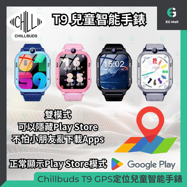 Chillbuds - 兒童手錶 T9 GPS LBS 多功能定位兒童智能手錶 生活防水 聲波排水 1GB RAM+8G ROM 1.83吋輕觸式大屏幕 前鏡頭 視頻通話 CPU雙核 WiFi