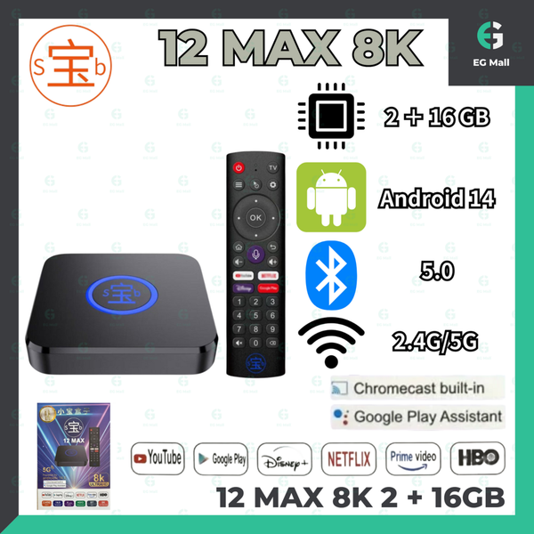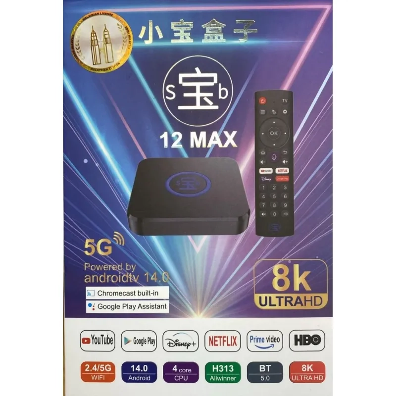 其他品牌 - 小寶盒子 12 MAX SBTV 12代 MAX (加強版) 中國直用網絡 全球通用 網絡機頂盒 智能語音 電視盒子 語音助手遙控 機頂盒