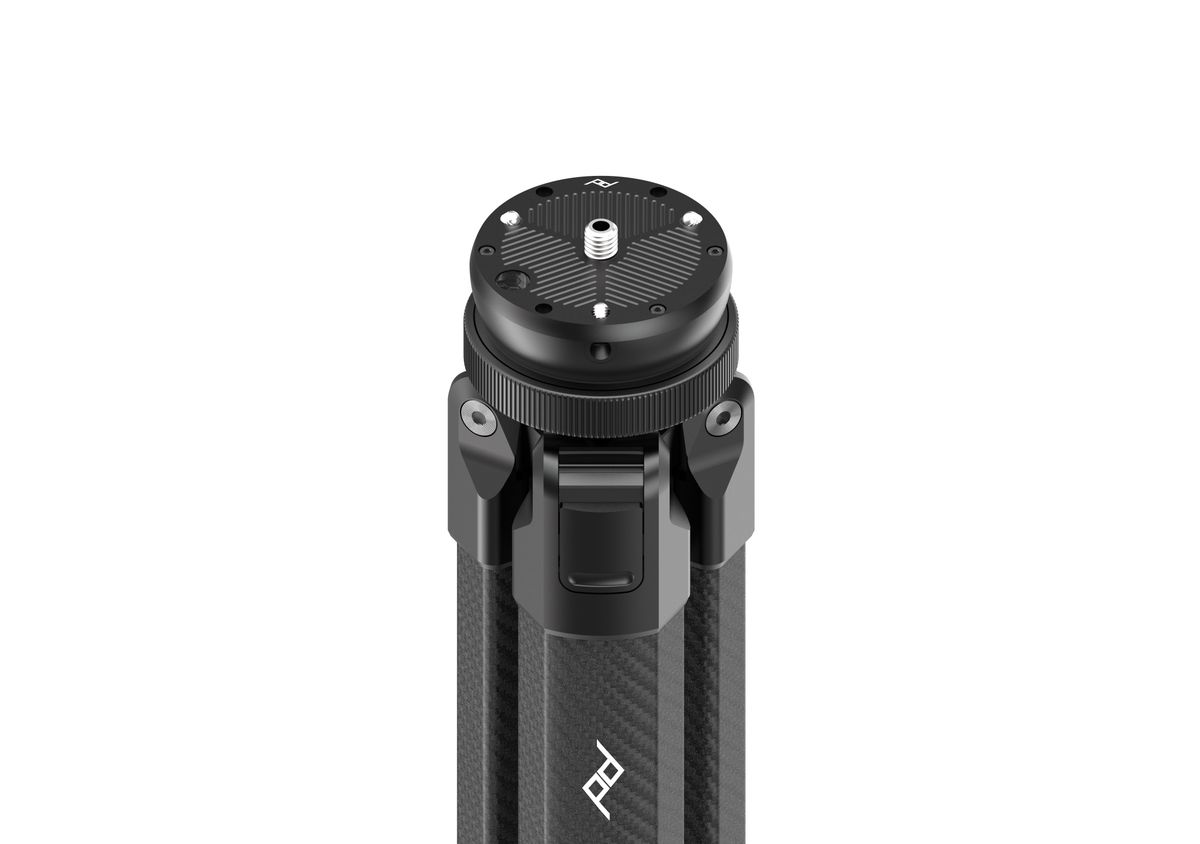 使用 Peak Design 的這款專業三腳架調平底座,無需單獨調整三腳架腳的長度即可實現相機水平定位。底座採用 3/8"-16 公頭螺紋接口,相容性強,可使 Peak Design 的 Pro、Pro Lite 和 Pro Tall 三腳架腿與專用雲台或穩定器配合使用。