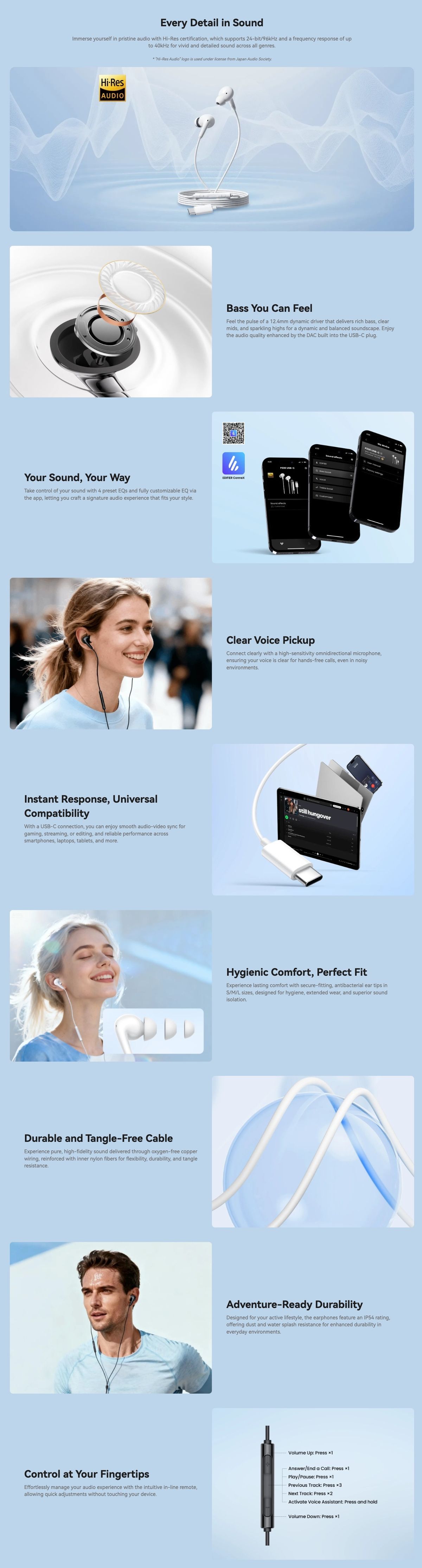 EDIFIER - P230 USB-C Type C 耳塞 漫步者 花再 Hi-Res 金標 入耳式耳機 音樂通話 全指向麥克風 12.4 毫米驅動器 EQ 選項