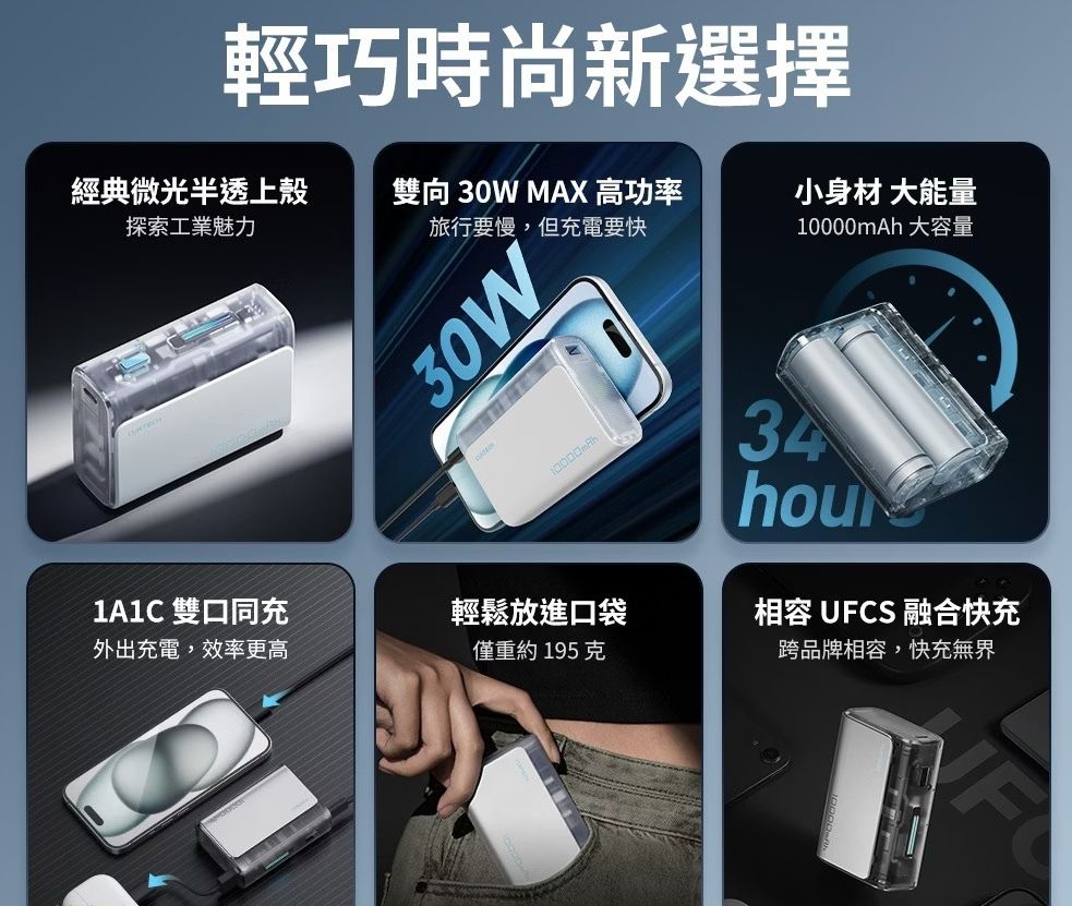 酷態科 - 電能塊 PB100S CP13 36Wh 1C1A UFCS 融合快充 CUKTECH 酷態科 33W 10000mAh 3C CCC認証 超級行動電源 流動充電池 外置電 尿袋