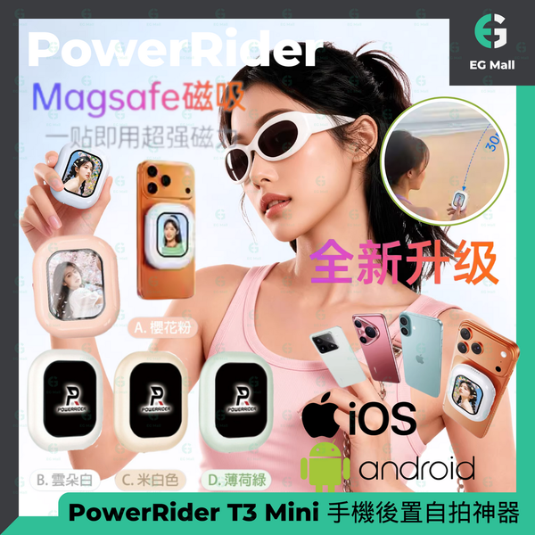 Others - 隨拍寶 自拍寶 PowerRider T3 Mini 適用於 APPLE iPhone 蘋果17 手機無線自拍顯示器 磁吸 後置拍照 旅遊自拍神器 投影便攜 直播 藍牙遙控 手機後置
